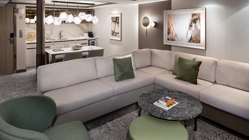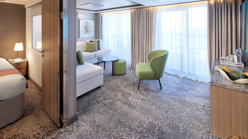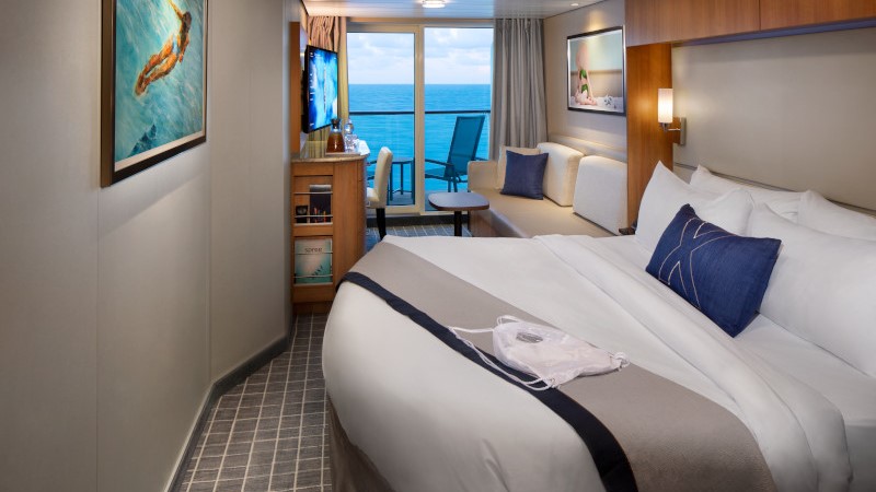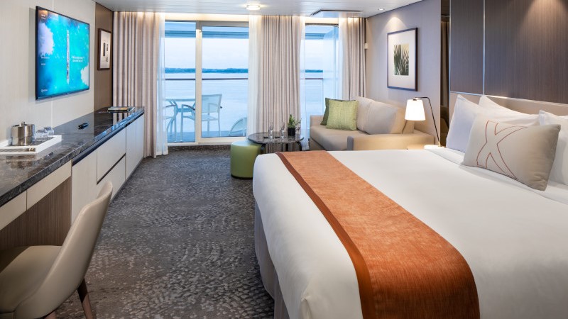 Ample indoor and outdoor space come together to create your private sanctuary at sea. Your personal veranda lets you greet the day, enjoy fresh sea breezes, and soak in breathtaking sunsets. Two twin beds that convert to a king-bed, sitting area with sofa, bathroom, floor-to-ceiling glass doors and a private veranda (balcony).